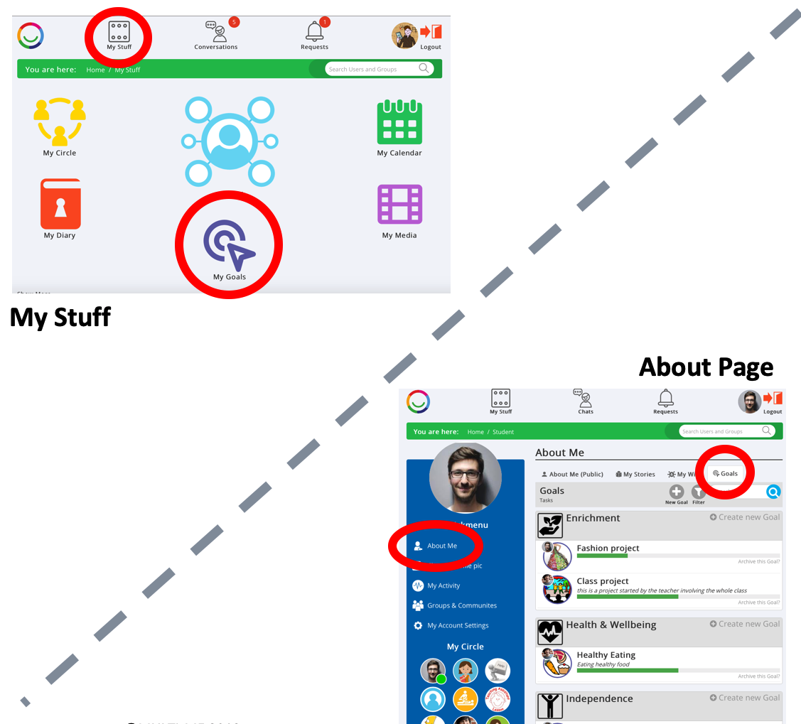 You can access the ‘My Goals’ dashboard from your My Stuff area or from the ‘About Me’ Page on your profile.